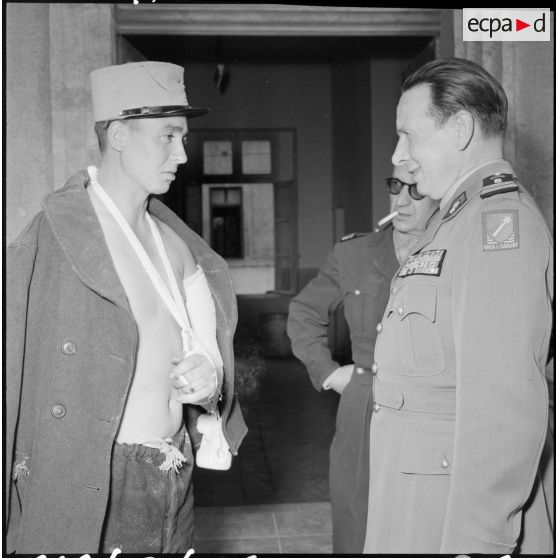 A l' occasion de Camerone le colonel Marguet chef d'état-major de la Xe RM s' est rendu à l' hopital Maillot à Alger pour remettre des colis aux légionnaires en traitement dans les pavillons de chirurgie.