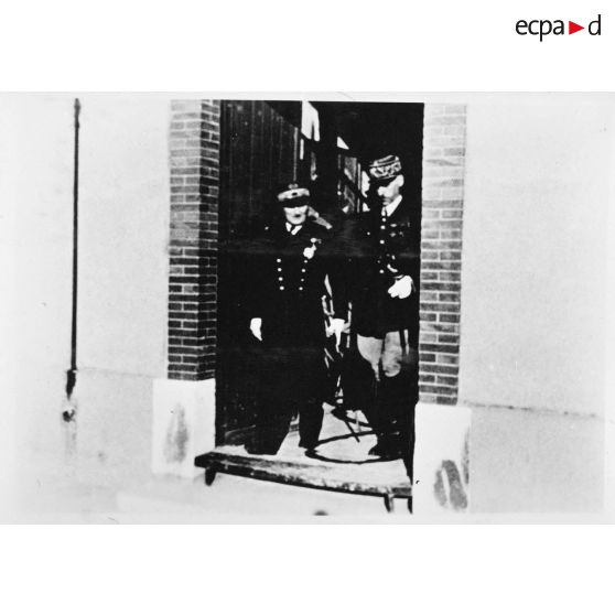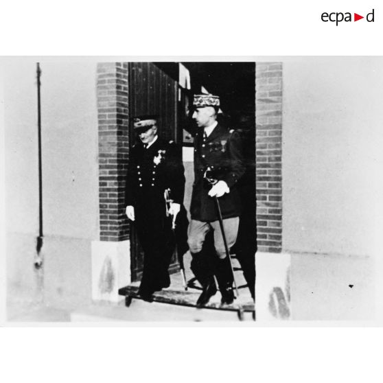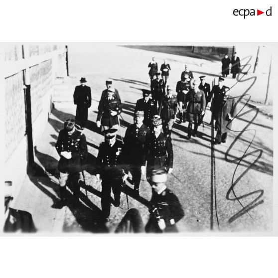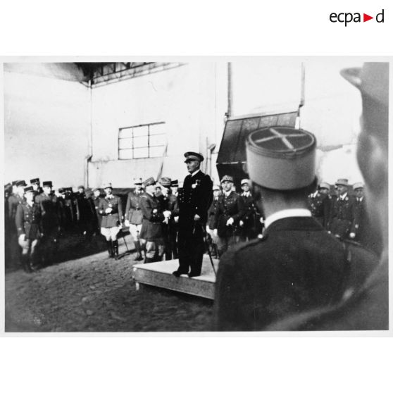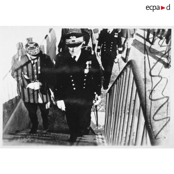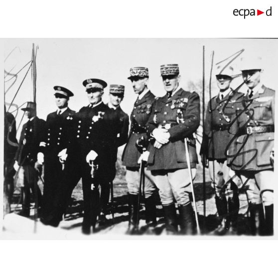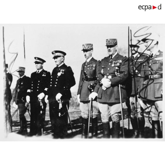 Le général d'armée René Olry, commandant le 1er groupe de divisions militaires, ainsi que le général de corps d'armée Jules Decamp, commandant la 15e division militaire de Marseille, accompagnent l'amiral lors de son inspection.