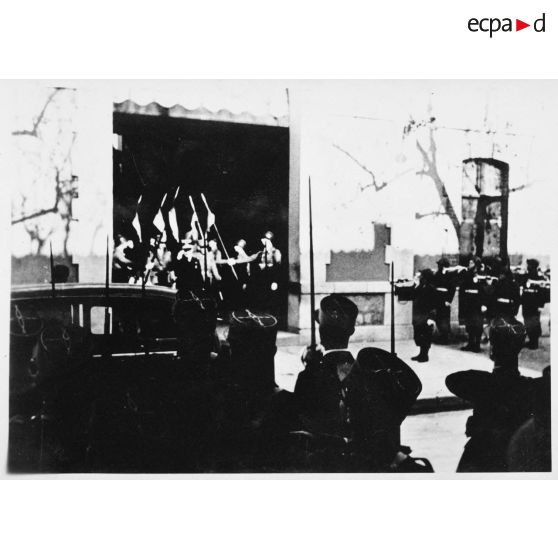 Inspection par l'amiral Darlan de l'école spéciale militaire de Saint-Cyr repliée à Aix-en-Provence (Bouches-du-Rhône).