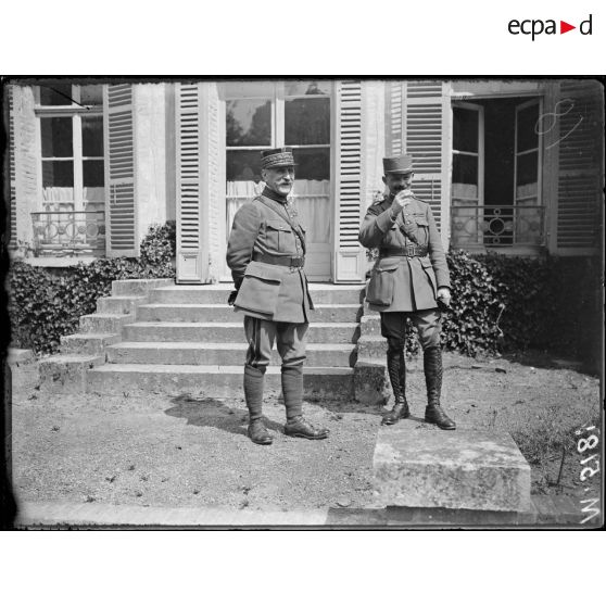 Visite de Monsieur Clemenceau sur le terrain d'aviation de Fouilloy / Le quartier général du général Foch à Sarcus.