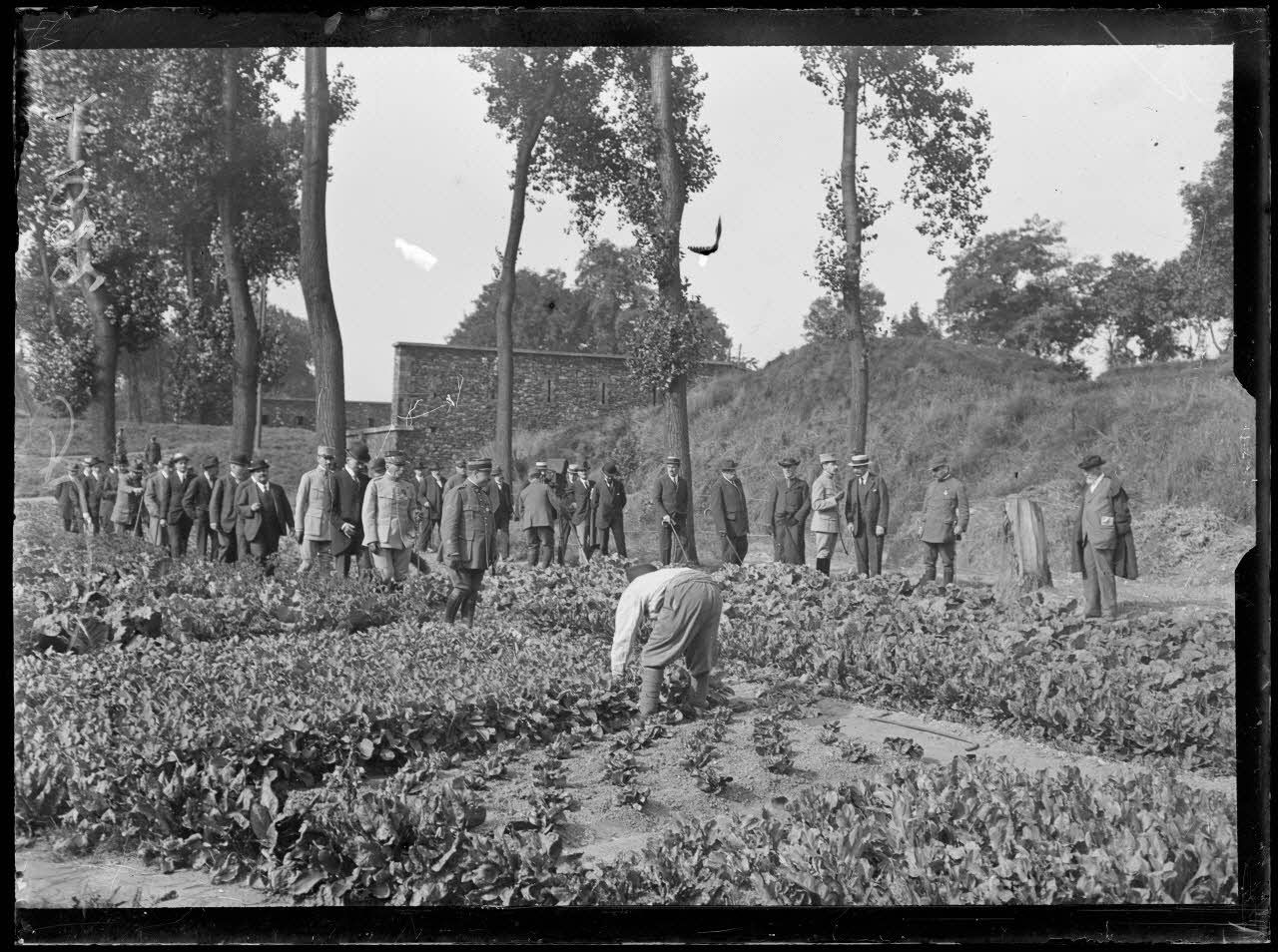 Visite des jardins potagers du 1e zouaves. St Denis. M. Thierry sous secrétaire d'Etat de l'Intendance. M. le général Parreau commandant le département de la Seine.