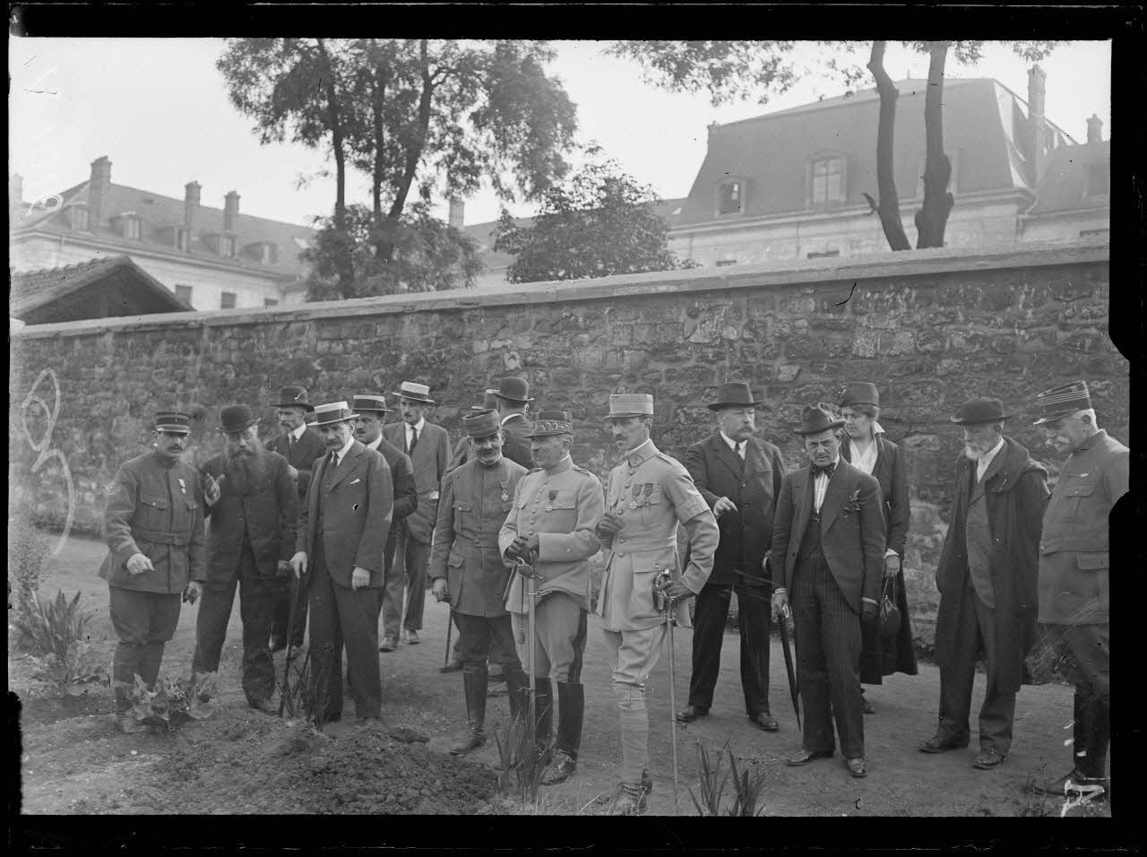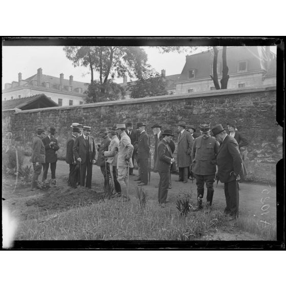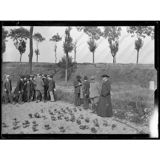Visite des jardins potagers du 1e zouaves. St Denis. M. Thierry sous secrétaire d'Etat de l'Intendance. M. le général Parreau commandant le département de la Seine. [légende d'origine]