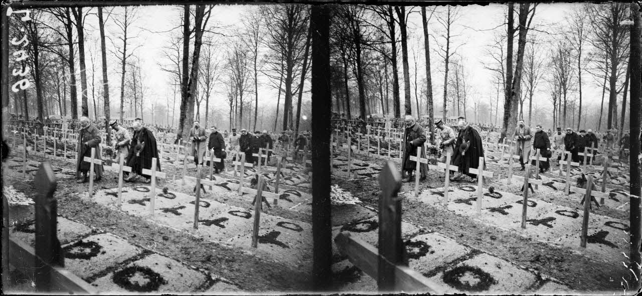 - la mission se recueille dans un cimetière militaire, près de la tranchée de Calonne (SPA 50 L 2435 à 2441) ;