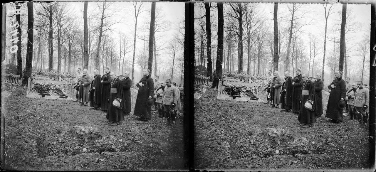 - la mission se recueille dans un cimetière militaire, près de la tranchée de Calonne (SPA 50 L 2435 à 2441) ;