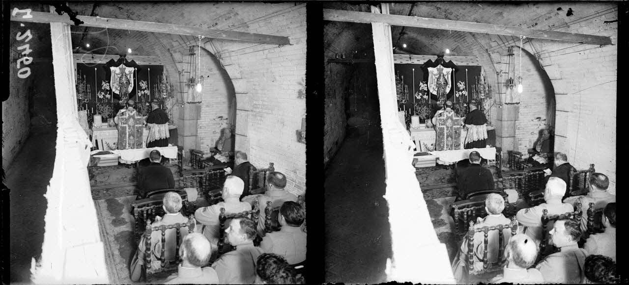 Visite du front de Verdun par la mission des évêques français et espagnols. La messe dans l'une des crypte de la cathédrale. [légende d'origine]