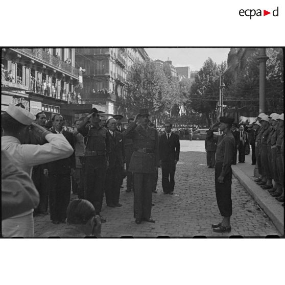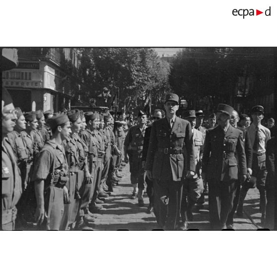 Revue des troupes par le général De Gaulle à Marseille le 15 septembre 1944.