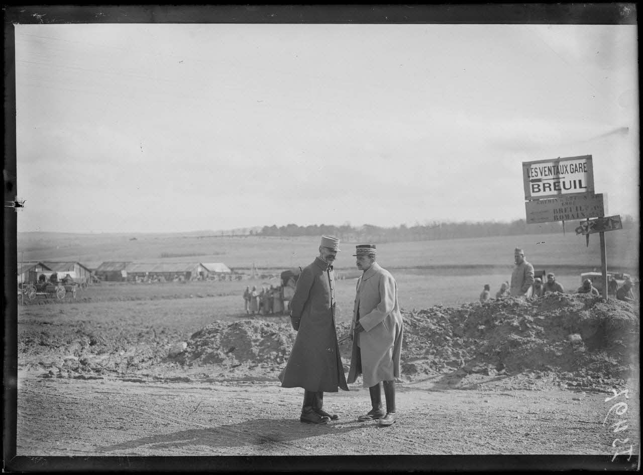Visite du président de la République à la 5e armée. Les généraux Mazel et Micheler. [légende d'origine]