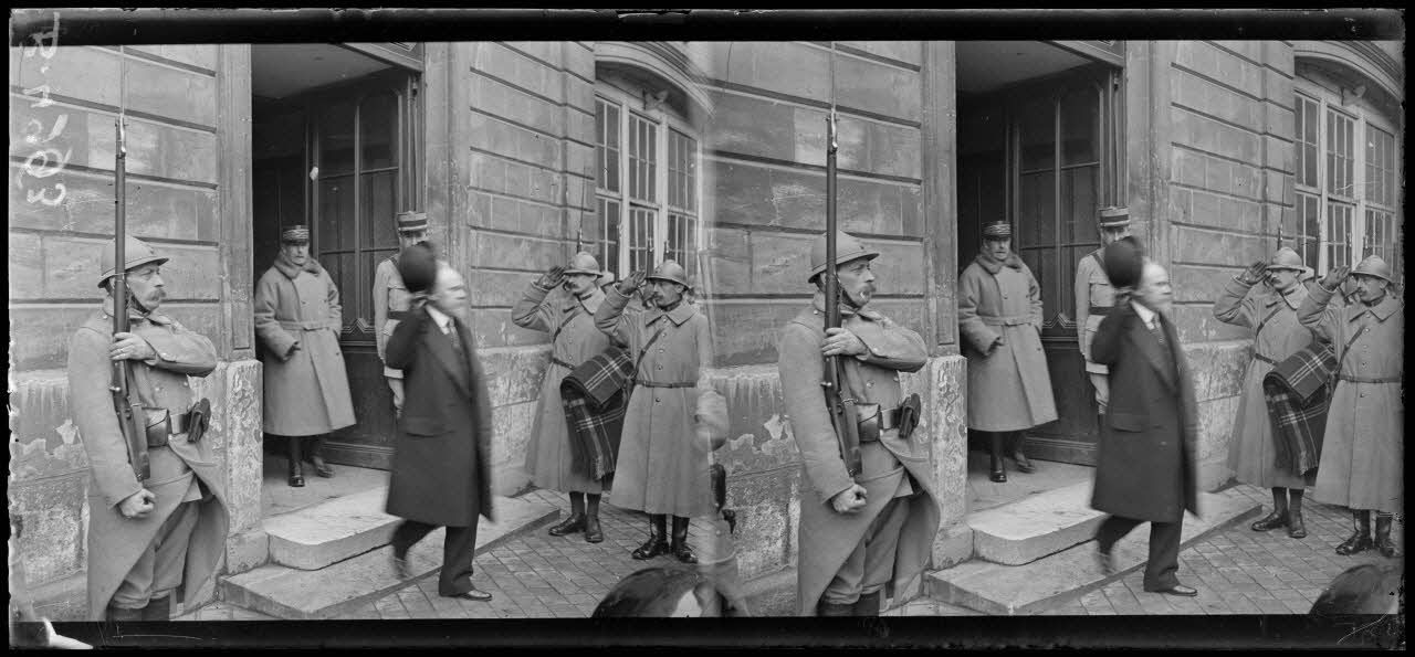 Visite du président de la République et du président du Conseil au GQG, le départ du président. [légende d’origine]