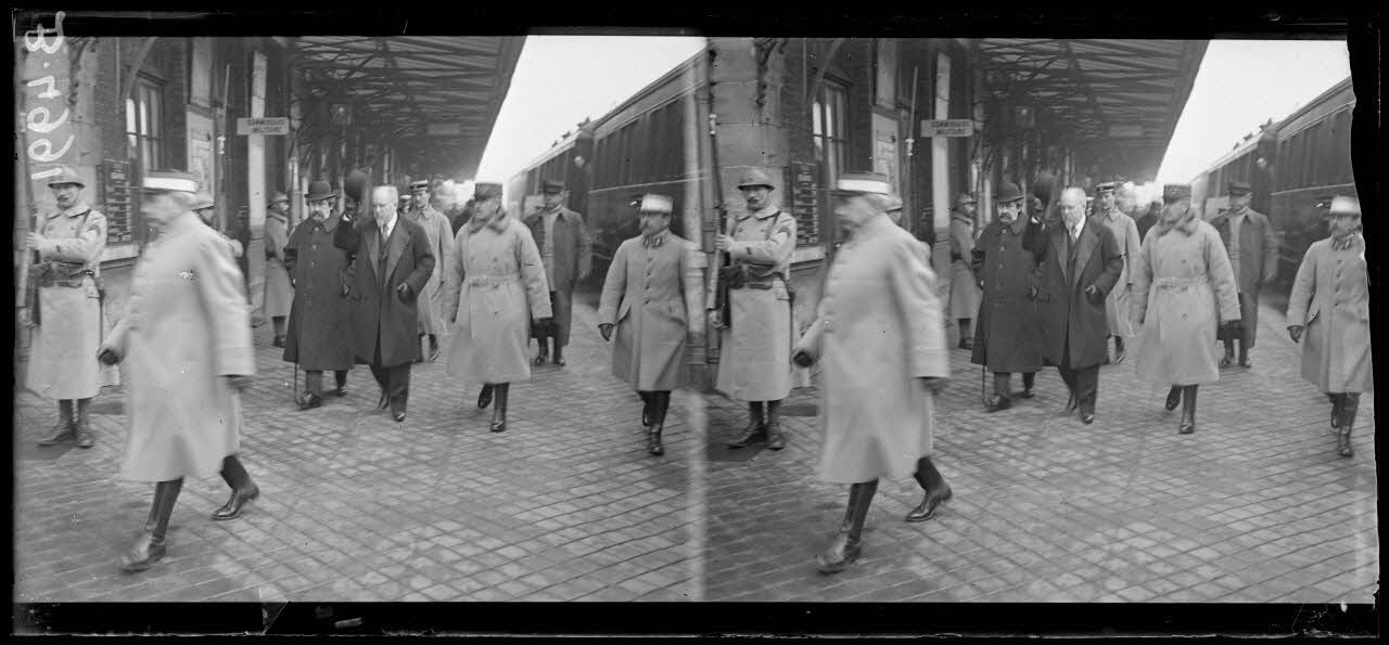 Visite du président de la République et du président du Conseil, l'arrivée à la gare de Beauvais. [légende d’origine]