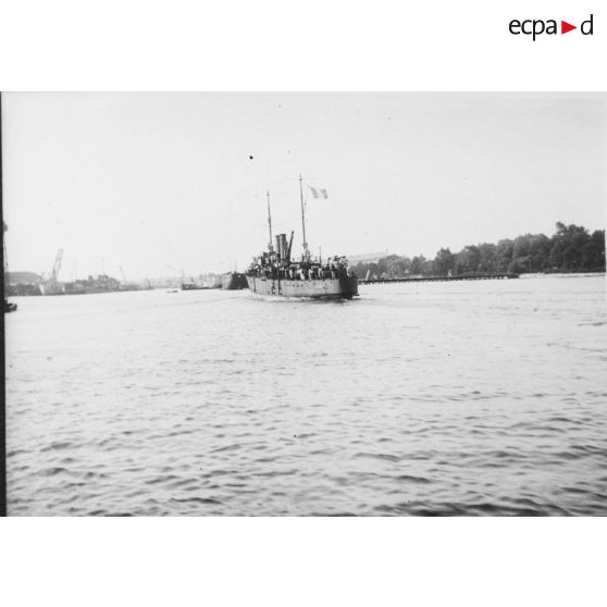 Visite de la rade de Lorient et notamment de la presqu'île de Gâvres, où la Marine procède depuis 1830 aux essais d'artillerie. Durant la guerre, ces essais réalisés conjointement pour le ministère de la Marine et le ministère de la Guerre avaient notamment pour but de tester les différents blindages mis au point, mais également de corriger les trajectoires de tir en milieu contraint à l'aide de cadres de cibles. Les différentes batteries de la presqu'île continuaient quant à elle de jouer leur rôle défensif tel qu'établi depuis le XVIème siècle.