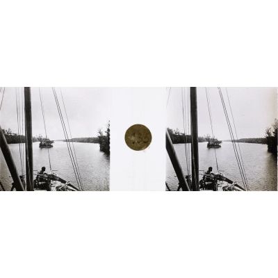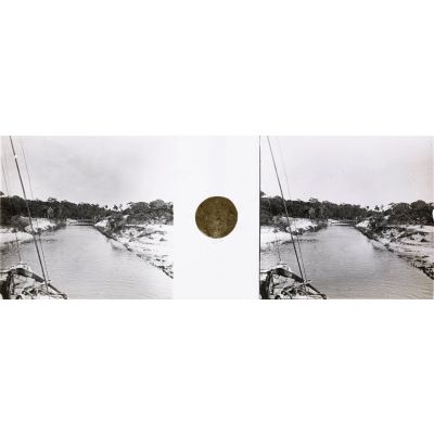 D68-10. Avant la colonisation, les villes de Madagascar n'étaient reliées que par des sentiers. Un énorme travail est donc entrepris dès 1895 par l'administration coloniale pour développer les voies de circulation sur l'île. Il s'agit tout d'abord de joindre Tamatave et Tananarive par route et par voie ferrée. En 1907, quand le lieutenant Denis débarque à Tamatave, le chemin de fer relie Ambila à Manjakandriana. Les travaux ferroviaires entre Manjakandriana et Tananarive sont en cours d'achèvement et il reste encore à réaliser le tronçon entre Ambila et Tamatave. Entre Tamatave et Ambila, il existait une suite de lagunes séparées par des seuils ou pangalanes. Le percement de ces seuils, entrepris dès 1897 par la compagnie des Messageries françaises de Madagascar, aboutit à la création du canal des Pangalanes en 1901. Le lieutenant Denis traverse ce canal à bord du bateau "Charles Bricka" et rejoint ainsi le départ de la voie ferrée à Ambila.