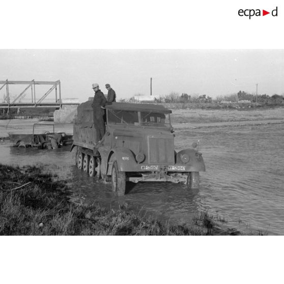 En Tunisie, le dépannage d'un véhicule anglais et des éléments de la légion de volontaires arabes dans la Wehrmacht (deutsche-arabische-Lehr-Abteilung) composé de volontaires d'Afrique du nord.