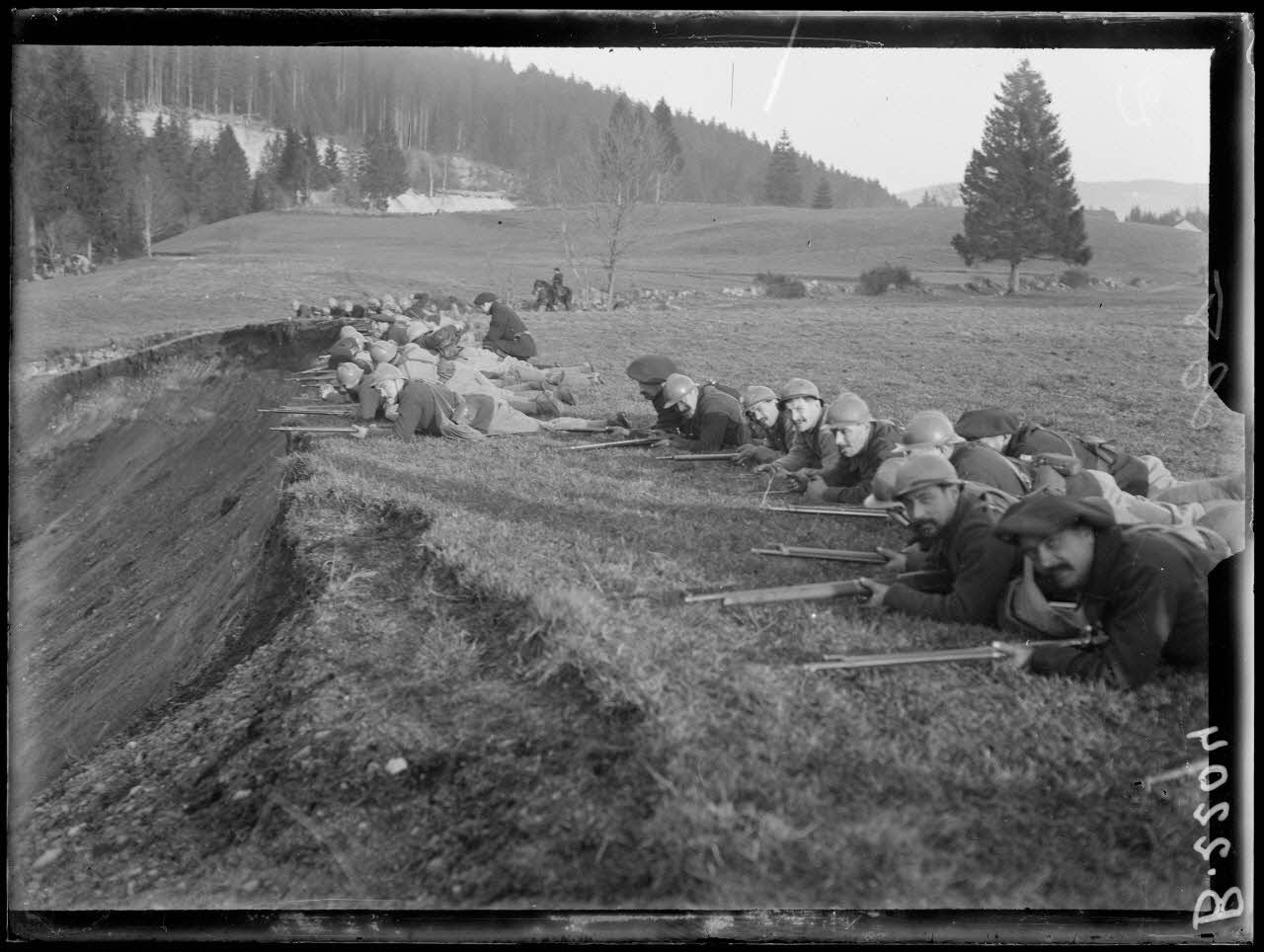 Vosges, chasseurs alpins se préparant à la manœuvre.