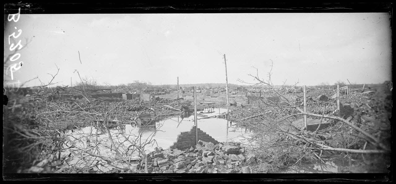 Vouël, près de Tergnier (Aisne), vue d'ensemble prise sur les ruines du village. [légende d'origine]