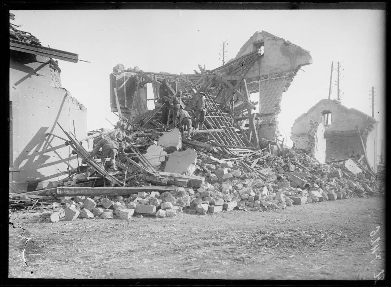 Ruines sur la ligne Metz à Sedan, novembre 1918.