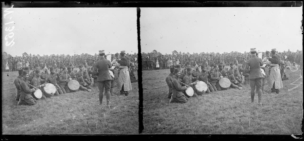 Vouzy (Marne), fête de la Division marocaine, les artistes parmi les officiers et les soldats.