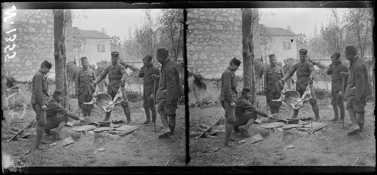 Vouzy (Marne), fête de la Division marocaine, on cuit des moutons entiers. [légende d'origine]