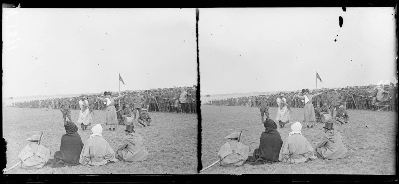 Vouzy (Marne), fête de la Division marocaine, les artistes parmi les officiers et les soldats.