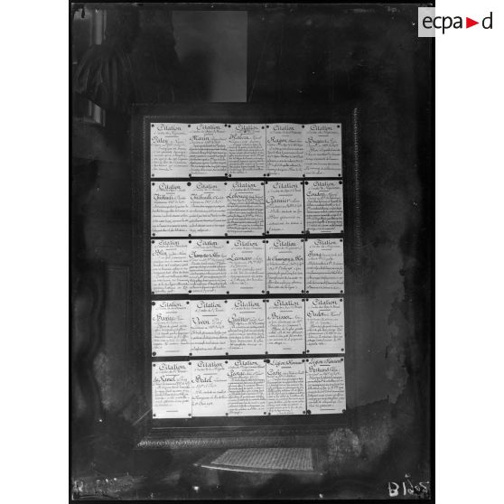 Seules 5 plaques existent sur une centaine mentionnées dans le registre. Le registre ne comporte aucune date. La période est déduite d'après les reportages des opérateurs Jacques Agié et Albert Moreau sur le même sujet.