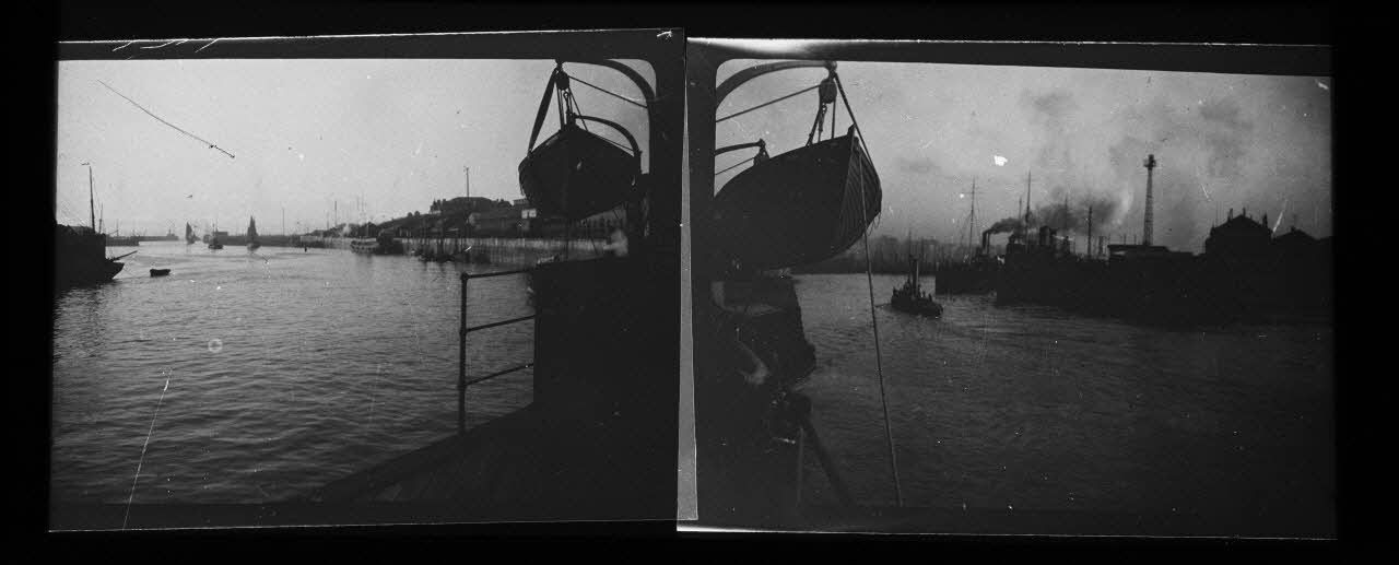 Reportages de plaques positives aux sujets divers, traitant de la visite à Compiègne pour observer les débris du zeppelin abattu le 17 mars 1917, des visites dans les régions dévastées ou encore le voyage d'une délégation française sur un navire britannique, probablement à destination de l'Angleterre.