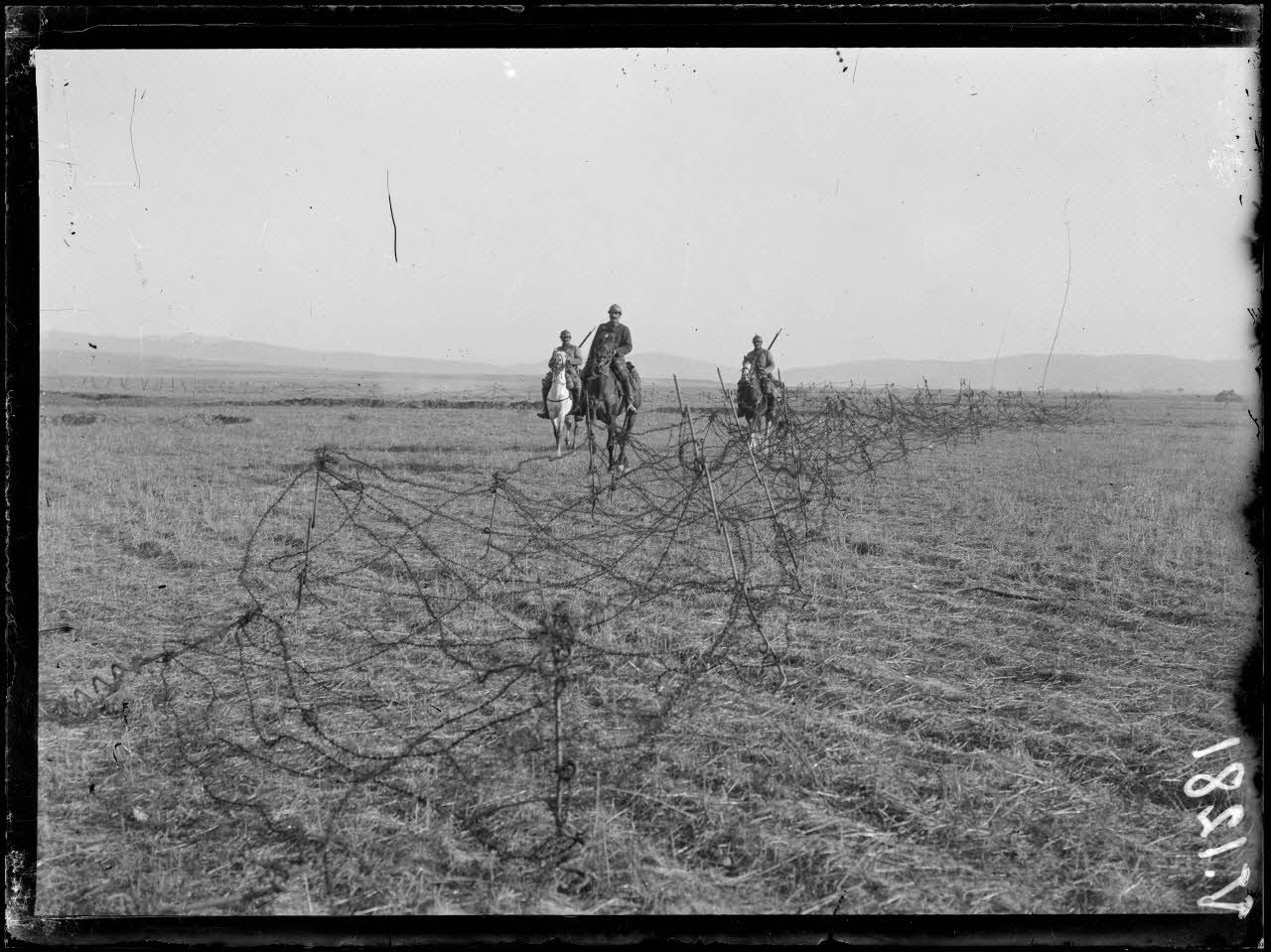 Une patrouille est obligée de longer les fils barbelés bulgares et des convois de mulets se dirigent vers le centre de ravitaillement.