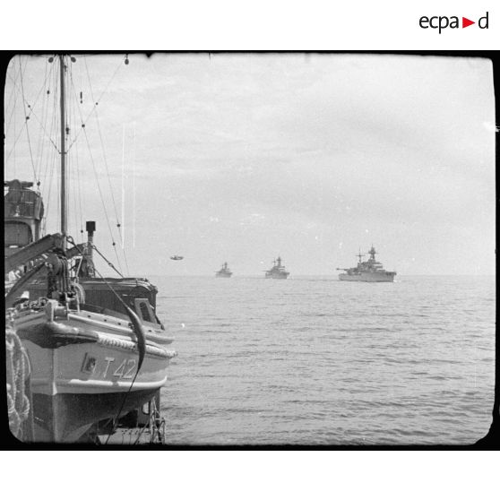- des croiseurs, dont le Montcalm, de la 4e division de croiseurs, en mer.