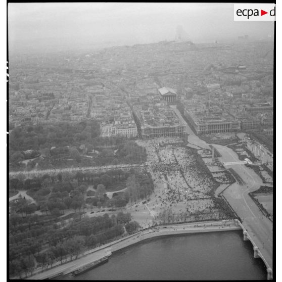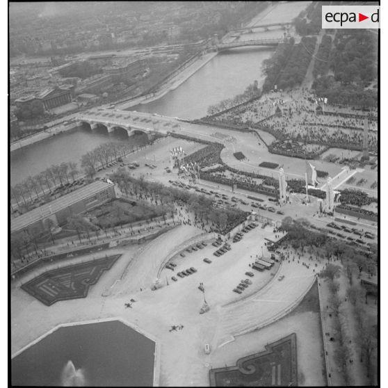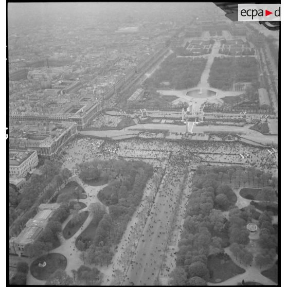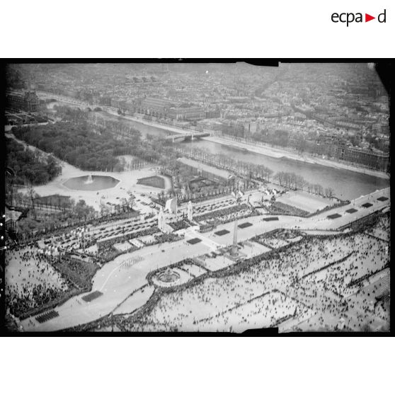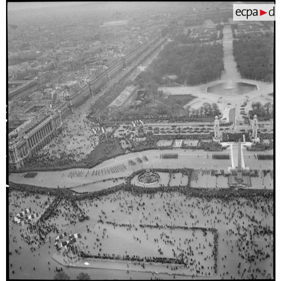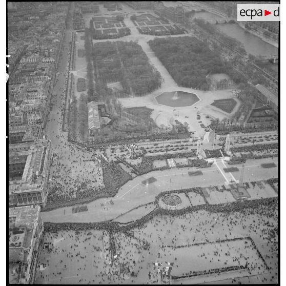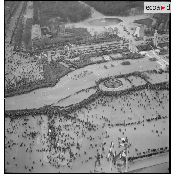 Cérémonie de la remise des drapeaux aux unités reconstituées (vues aériennes).