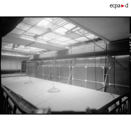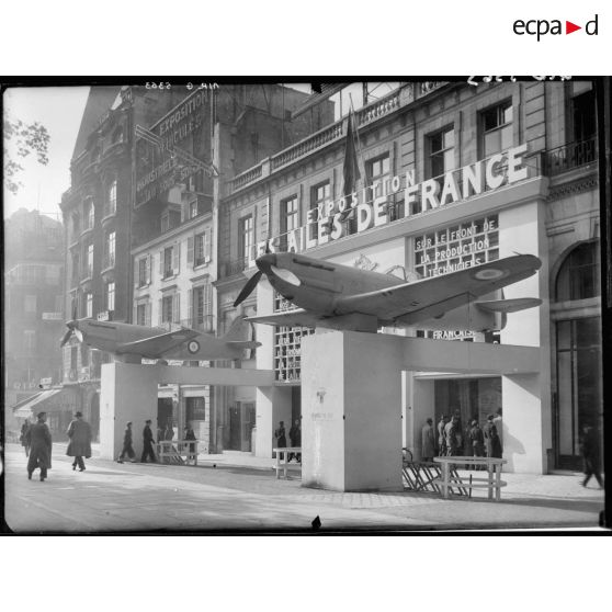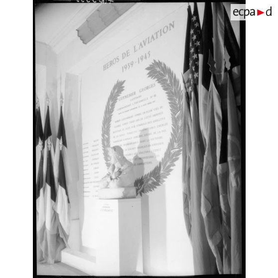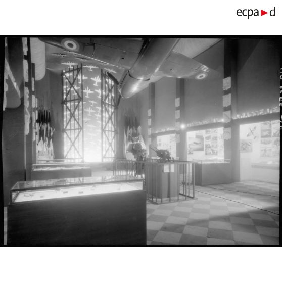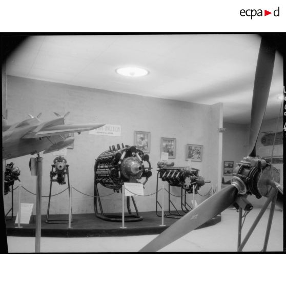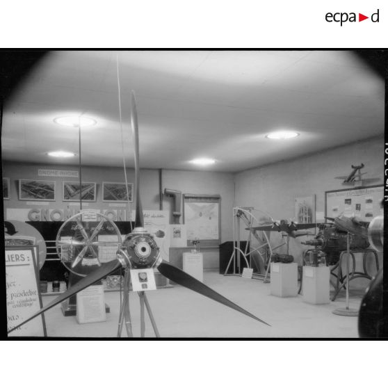 La salle du fond de l'exposition, consacrée aux fleurons de l'industrie française de l'aéronautique et à leurs productions.