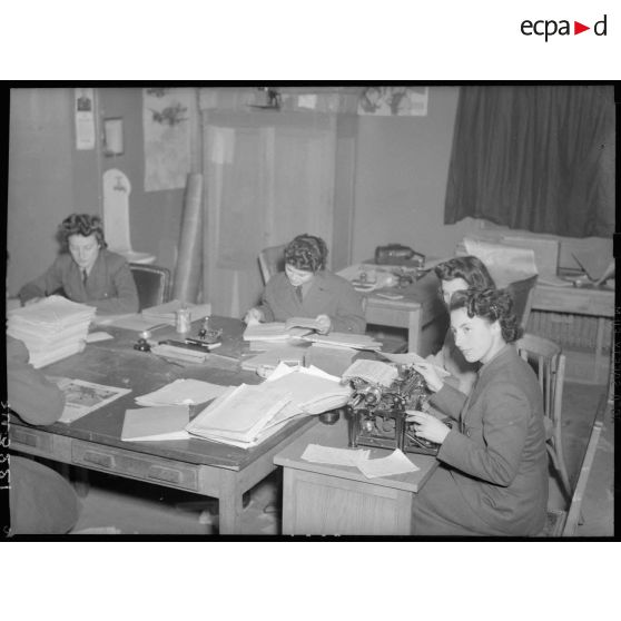 Des secrétaires travaillent sur des dossiers au Ministère de l'Air, boulevard Victor.