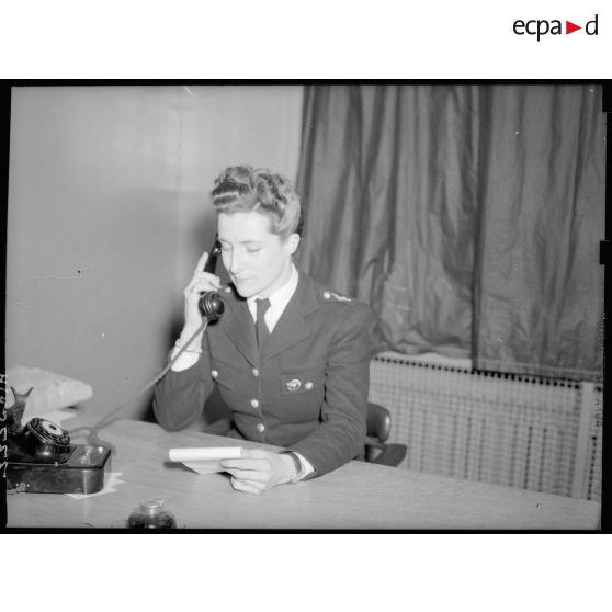 Une femme répond au téléphone dans un bureau du Ministère de l'Air, boulevard Victor.