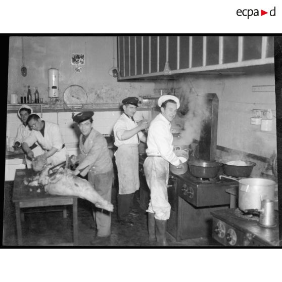 Les cuisiniers du Ministère de l'Air préparent le repas, boulevard Victor.
