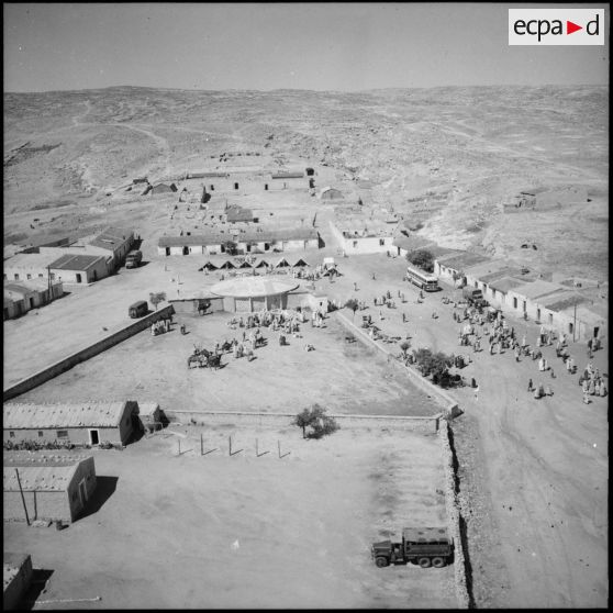 Vue aérienne du marché de Bir el-Aten, commune algérienne de la wilaya de Tébessa.