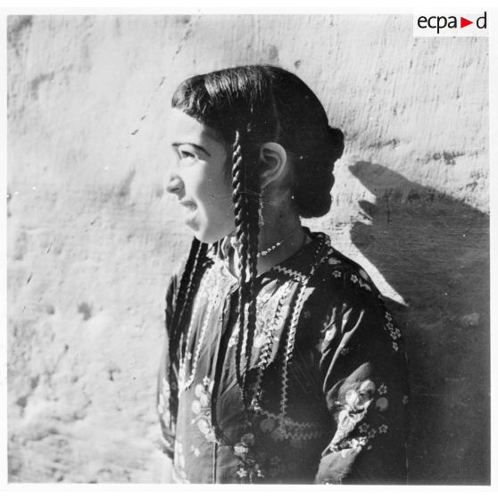 Portrait de profil d'une jeune fille.