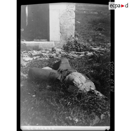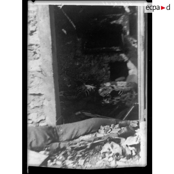 Cadavre au milieu des ruines à Vassieux-en-Vercors.