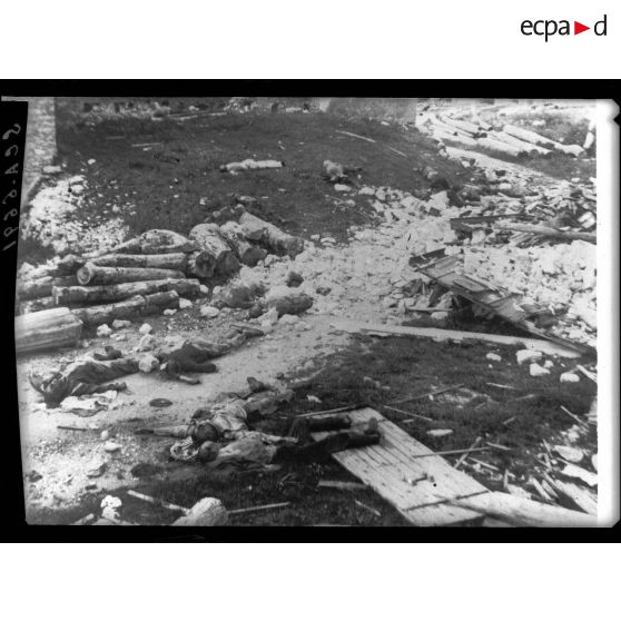 Cadavres au milieu des ruines à Vassieux-en-Vercors.