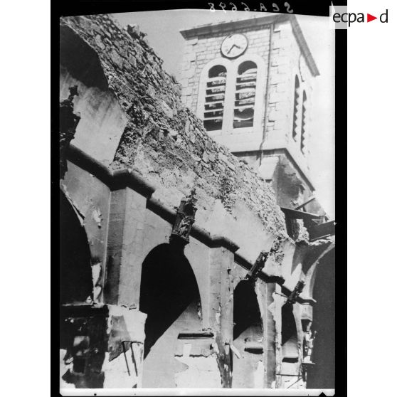 L'église de Vassieux-en-Vercors en ruine suite à la destruction du village par les armées allemandes en juillet 1944.