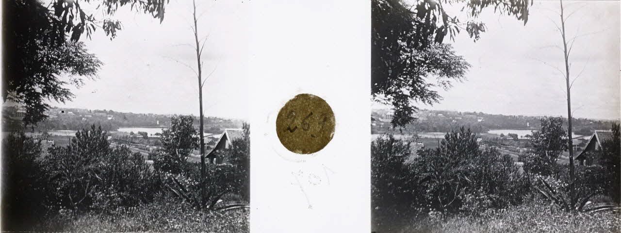 D68-25. Au sud de Tananarive, au-dessus du petit lac Tsimbazaza, s'élève la colline d'Ambohijanahary où les Français édifièrent le fort Voiron après 1895. Sur les premiers contreforts de ce massif, plusieurs maisons forment le faubourg d'Imerintsiafindra, où est logé René Denis.