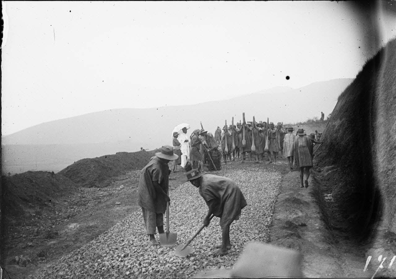 Edgard Imbert (1873-1915), sous-lieutenant de l'infanterie coloniale et photographe est en poste à Madagascar du 10 février 1900 au 23 avril 1902. Il photographie, au cours du trajet entre Tananarive et Fianarantsoa, les paysages, les villages, la population et les chantiers de construction de routes.