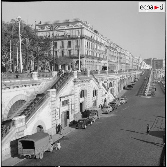 Vue du front de mer d'Alger. A l'arrière-plan l'hôtel Aletti.