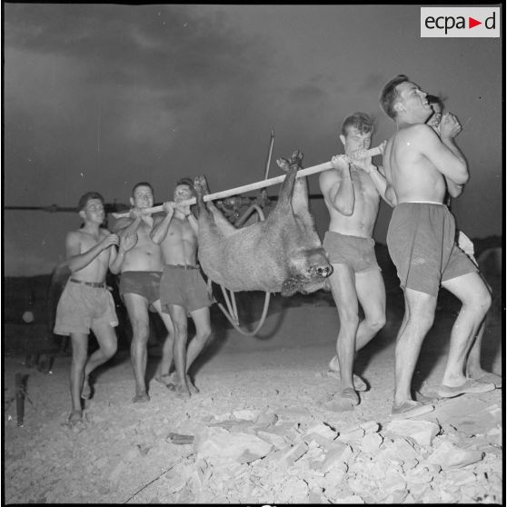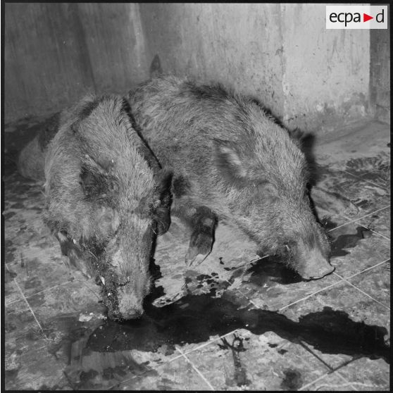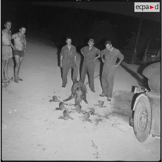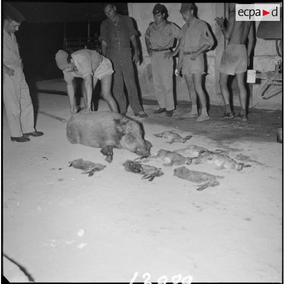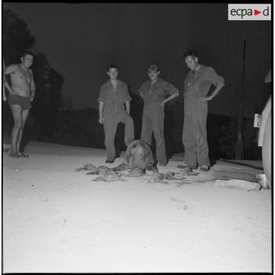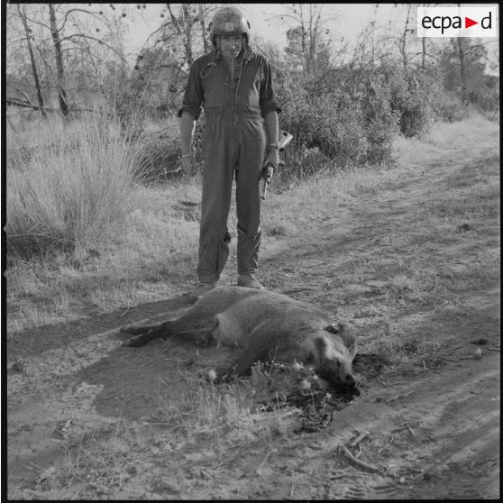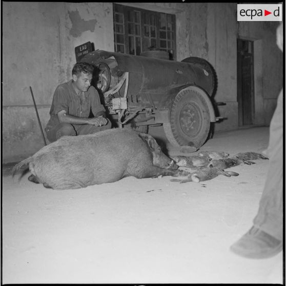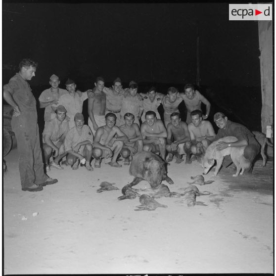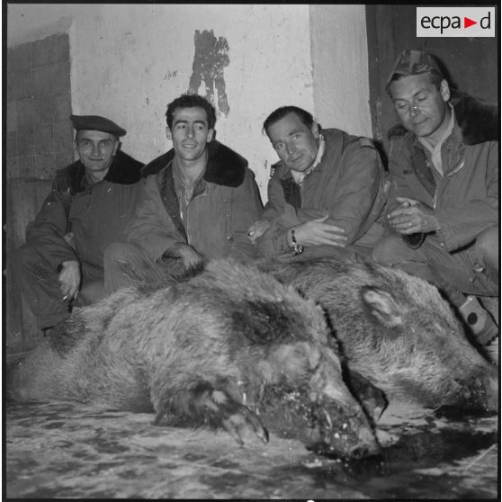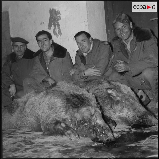 Fonds photographique de Arthur Smet (1932 - ). Chasse au sanglier à Fenouane, près de la ferme Garrigues .