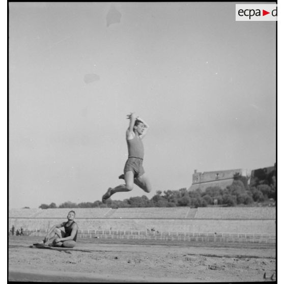 Entraînement au saut en longueur au CNMA d'Antibes.