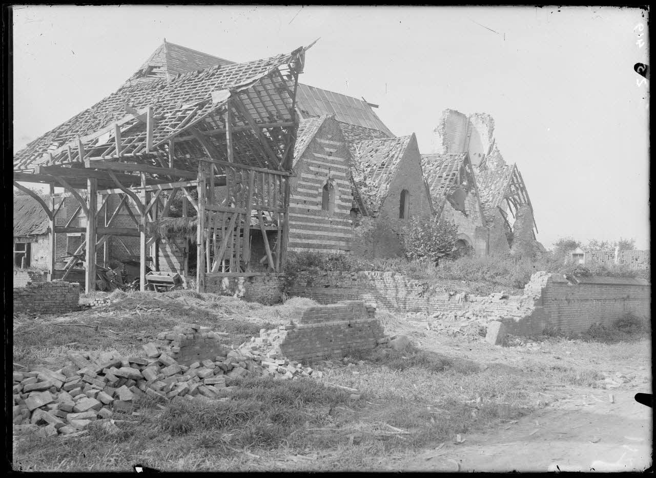 Dans les villages de Dancourt, Grivillers, Cessier, (Somme, Z 354 à Z 356), les habitations et les églises sont détruites.
