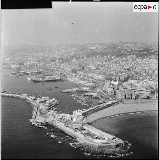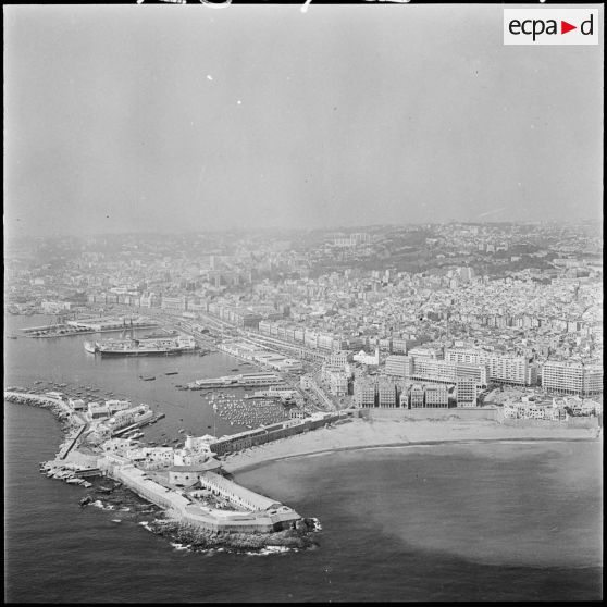 Vues aériennes de la ville d'Alger - l'Amirauté, les voutes et le phare.