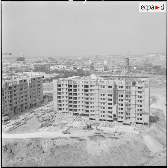 Vues aériennes de la ville d'Alger - construction des ateliers industriels de l'Air (AIA) d'Alger-Maison Blanche.