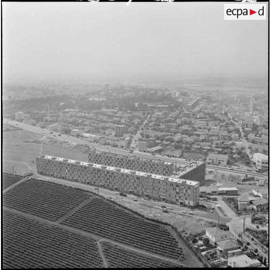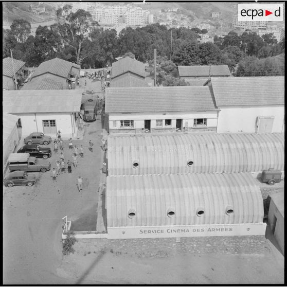 Vues aériennes de la ville d'Alger - les locaux du Service cinématographique de l'armée (SCA), quartier Martimprey.