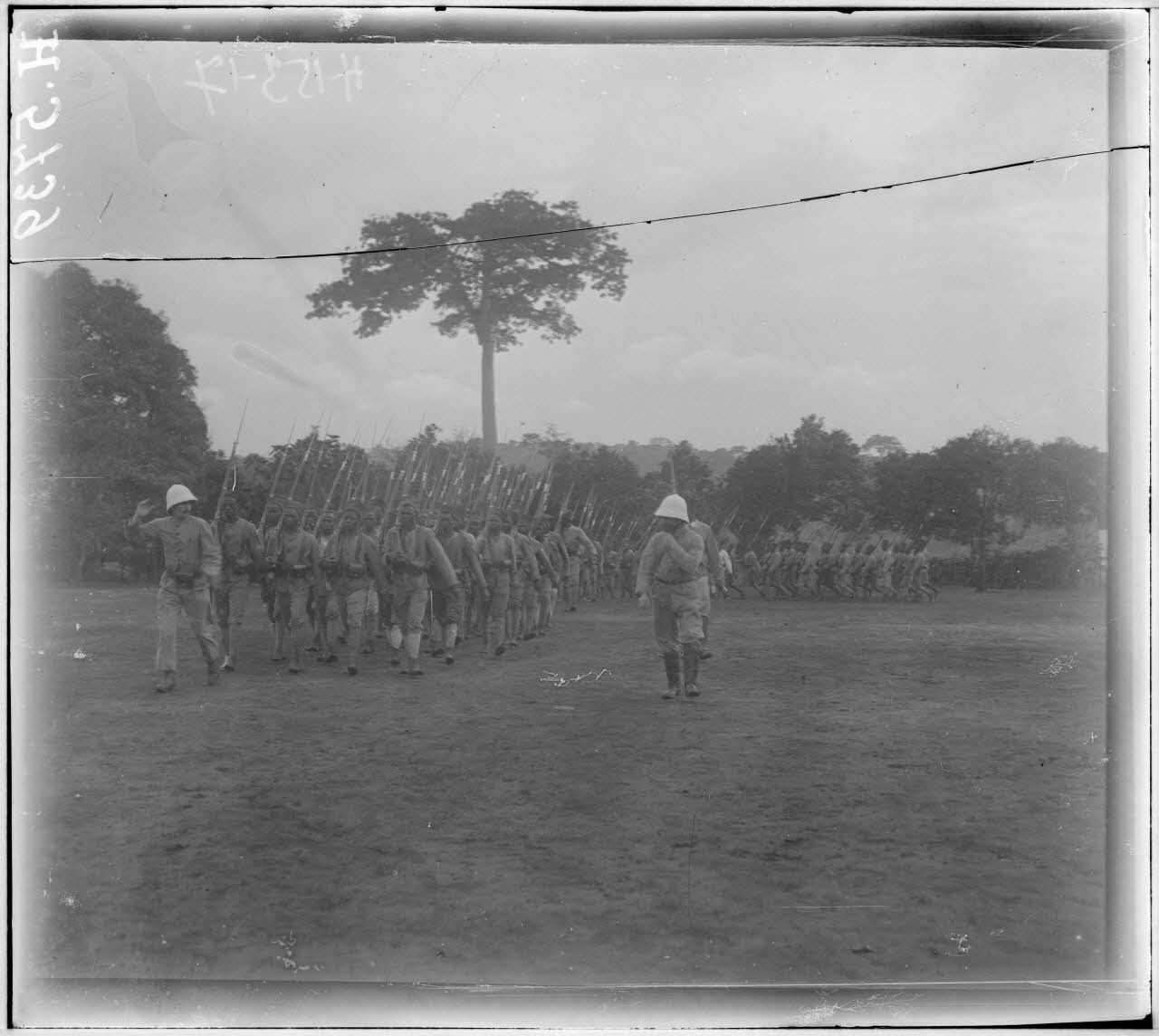 Tirailleurs à l'exercice sur la place d'armes de Yaoundé, septembre 1917.