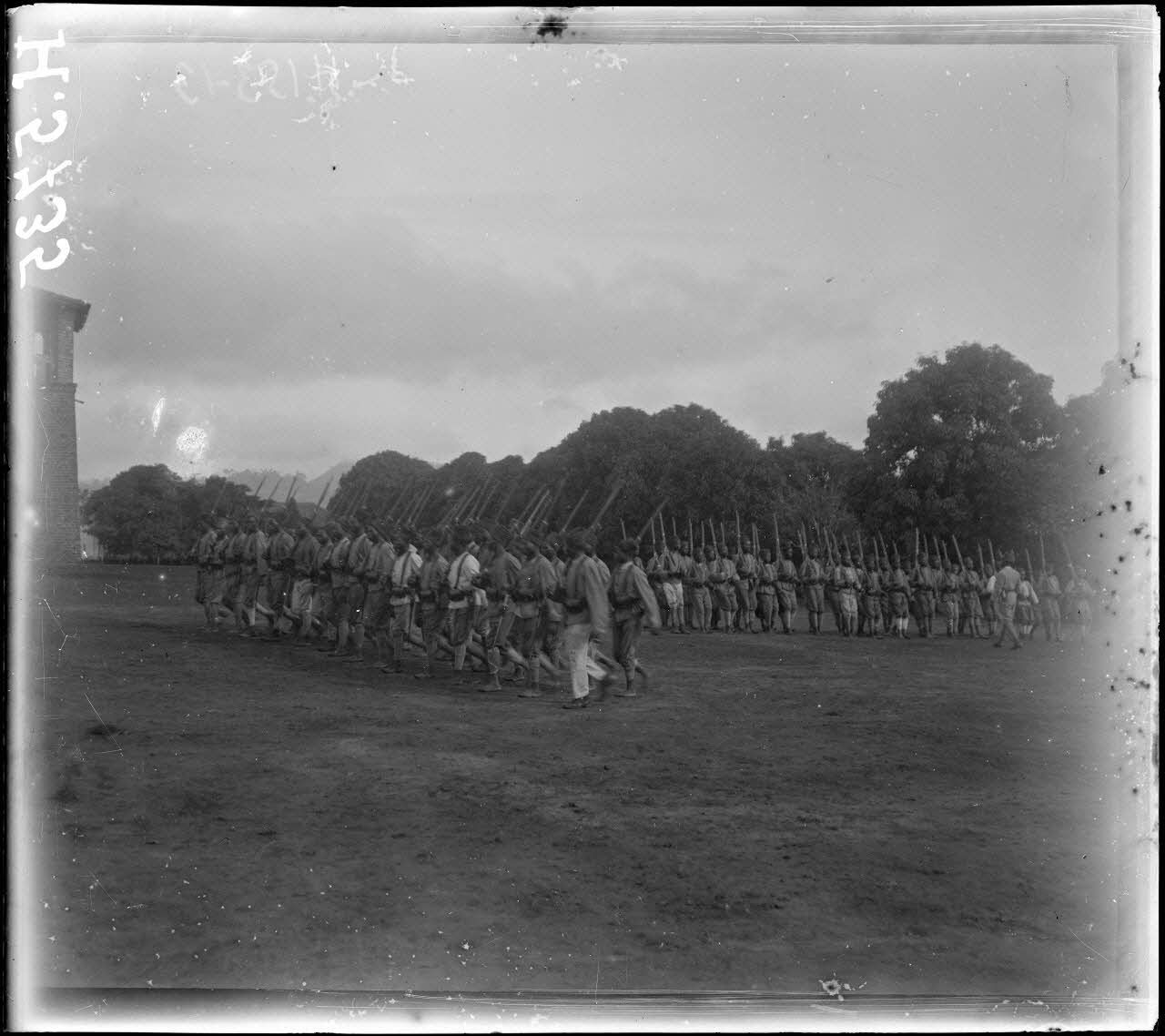 Tirailleurs à l'exercice sur la place d'armes de Yaoundé, septembre 1917.