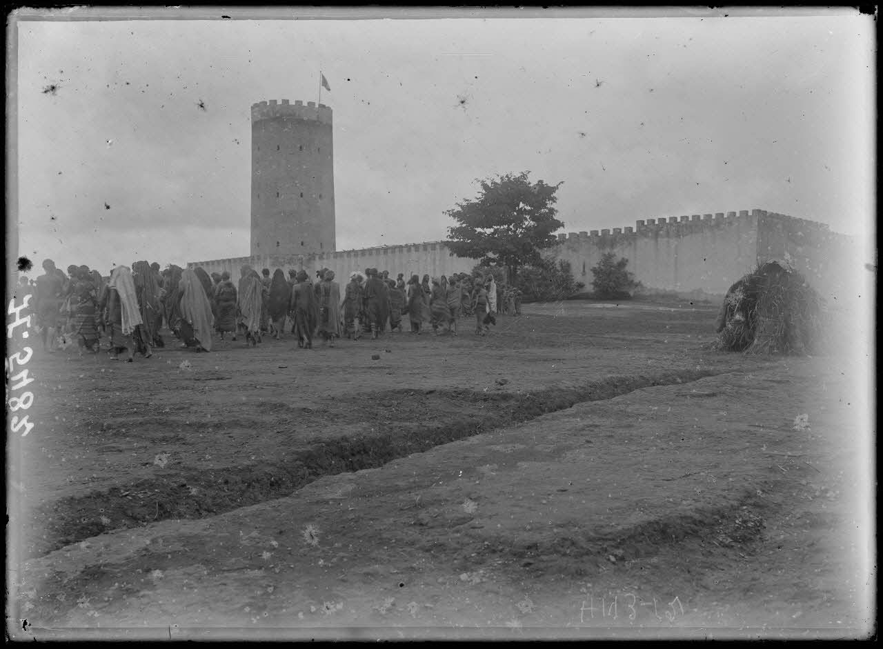 Le poste militaire comporte une vaste enceinte et une tour de plusieurs étages.