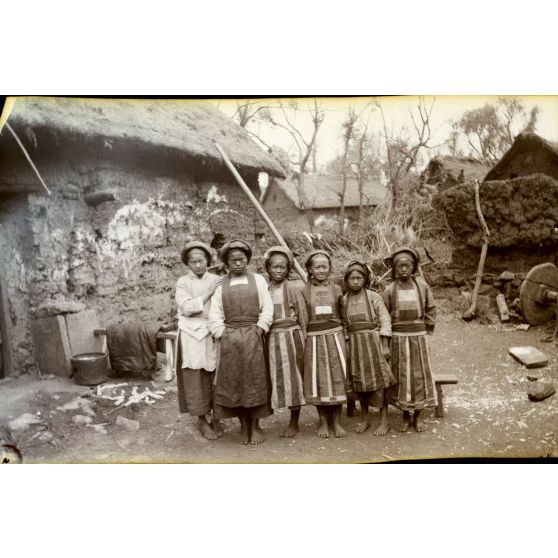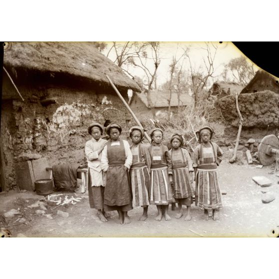 Yunnan méridional. Populations aborigènes. Groupe de femmes et enfants.