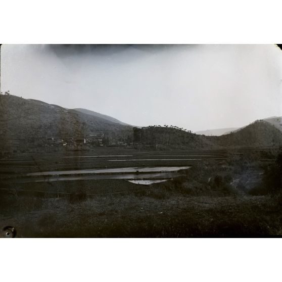 Yunnan méridional. Route de Mong Tze à Mang Hao. Le sommet qui porte le fort de Ma Ting près de Choui Tien. En arrière du fort, vue des hauteurs qui dominent la vallée du fleuve Rouge.